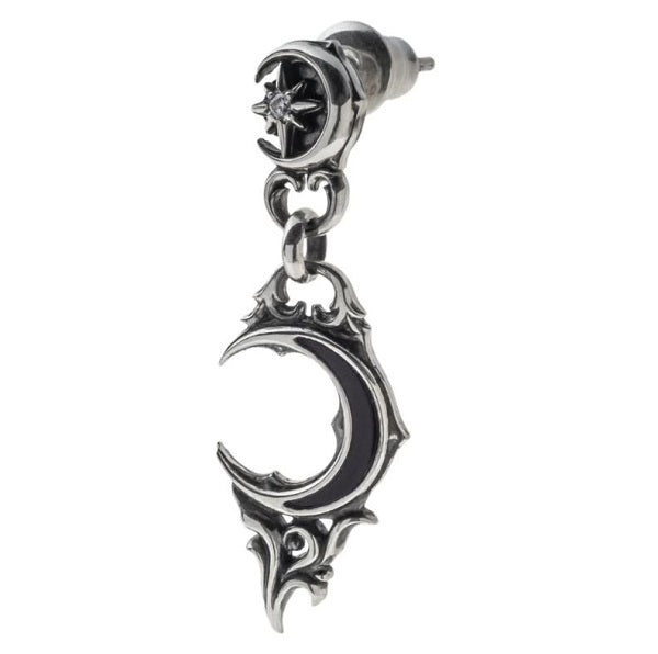 The crescent moon motif features a layered, tracery-like design set with synthetic onyx.