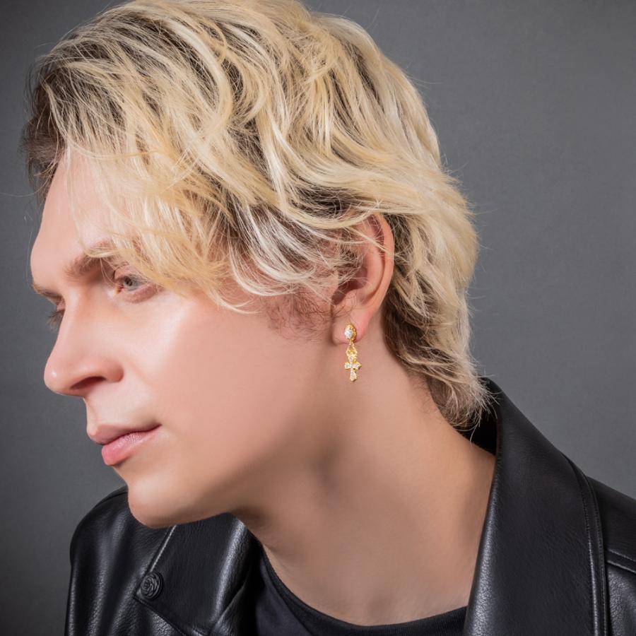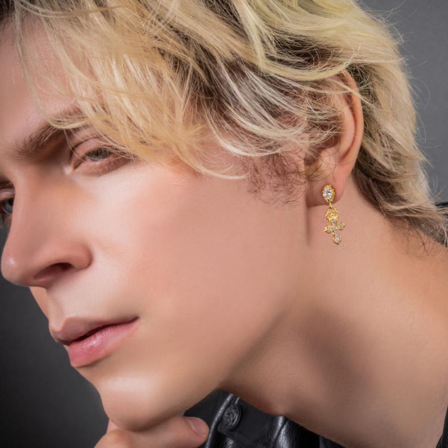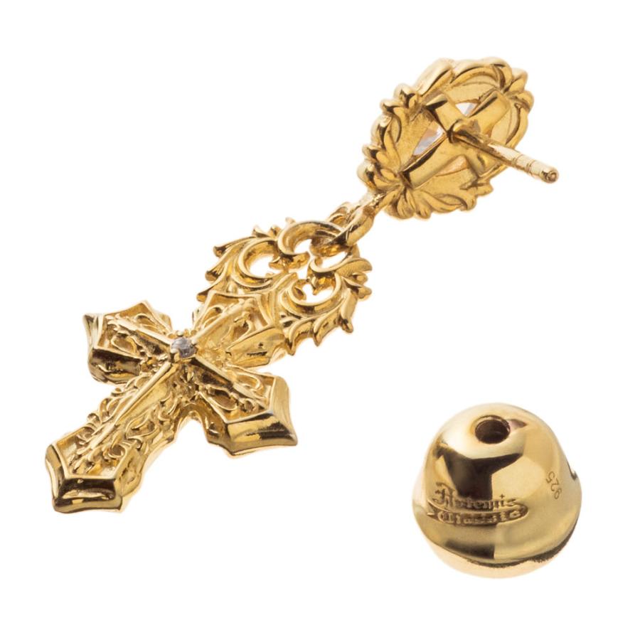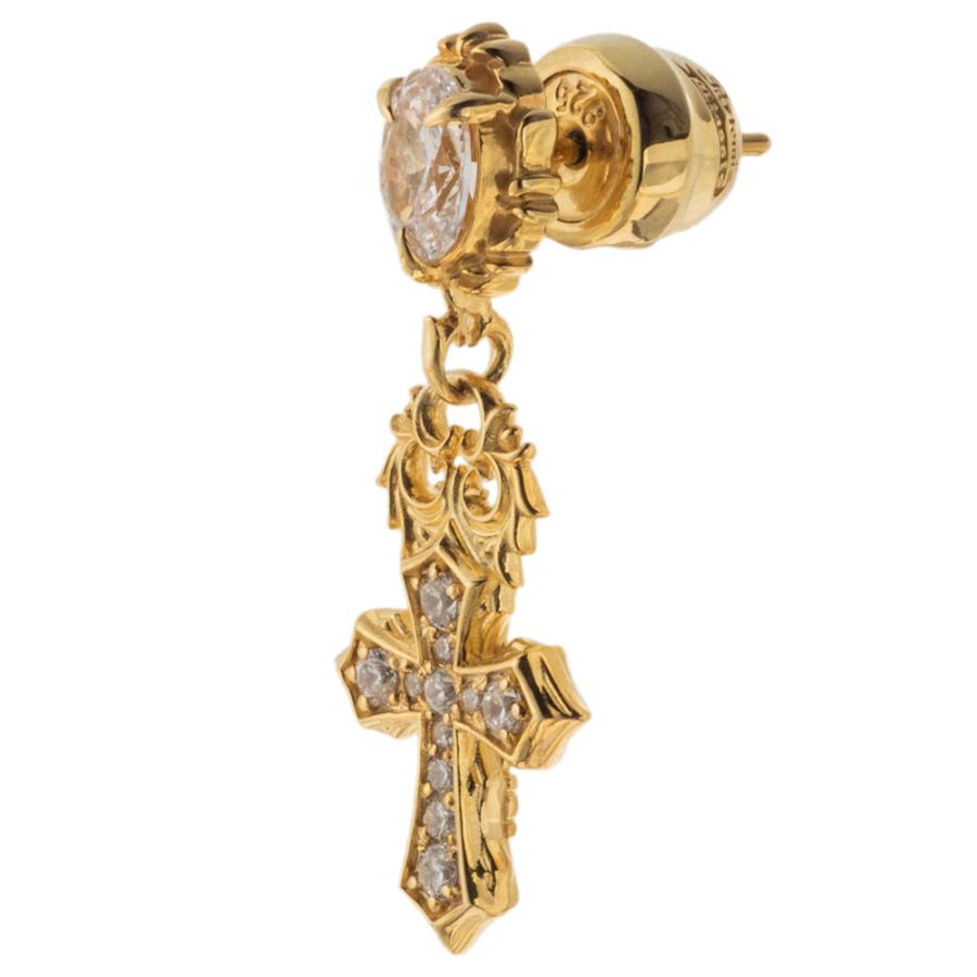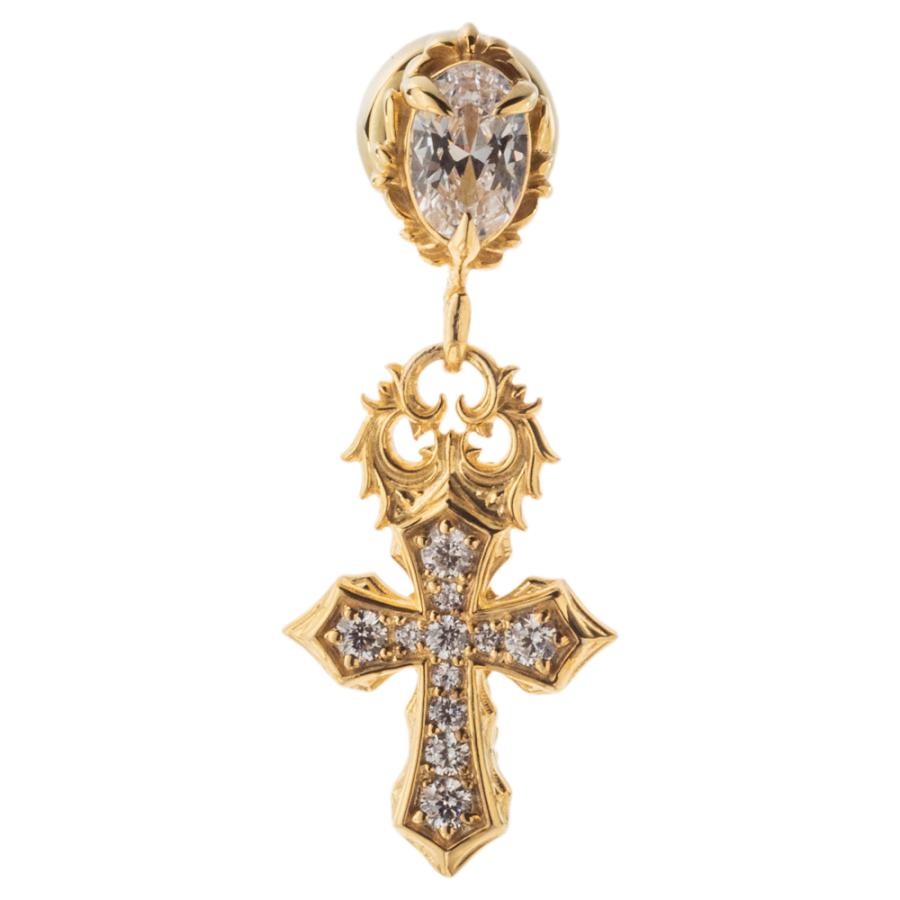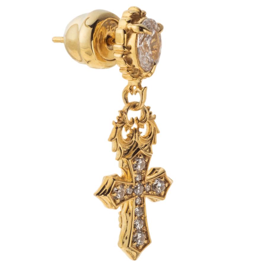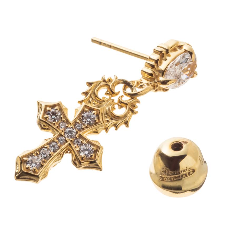 10金イエローゴールドメッキを全体に施したクロスのドロップピアス。