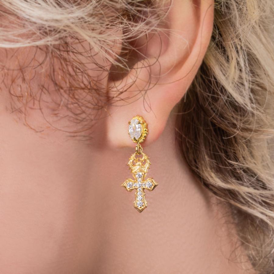 Cross drop earrings with 10K yellow gold plating throughout.