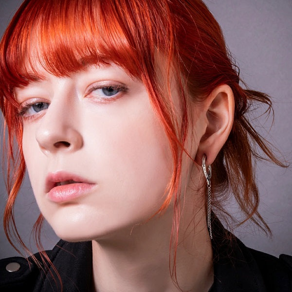 細い喜平チェーンとアズキチェーンが連なり、耳元でゆらゆらと艶やかに揺れる姿が魅力です。