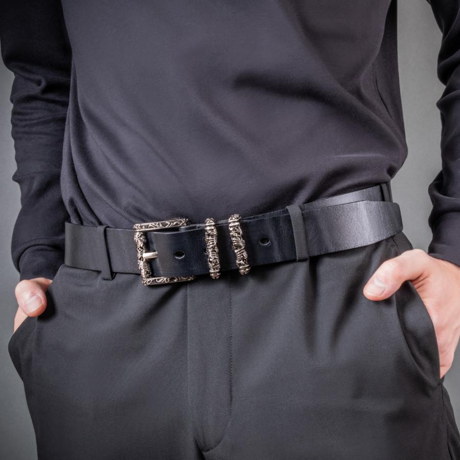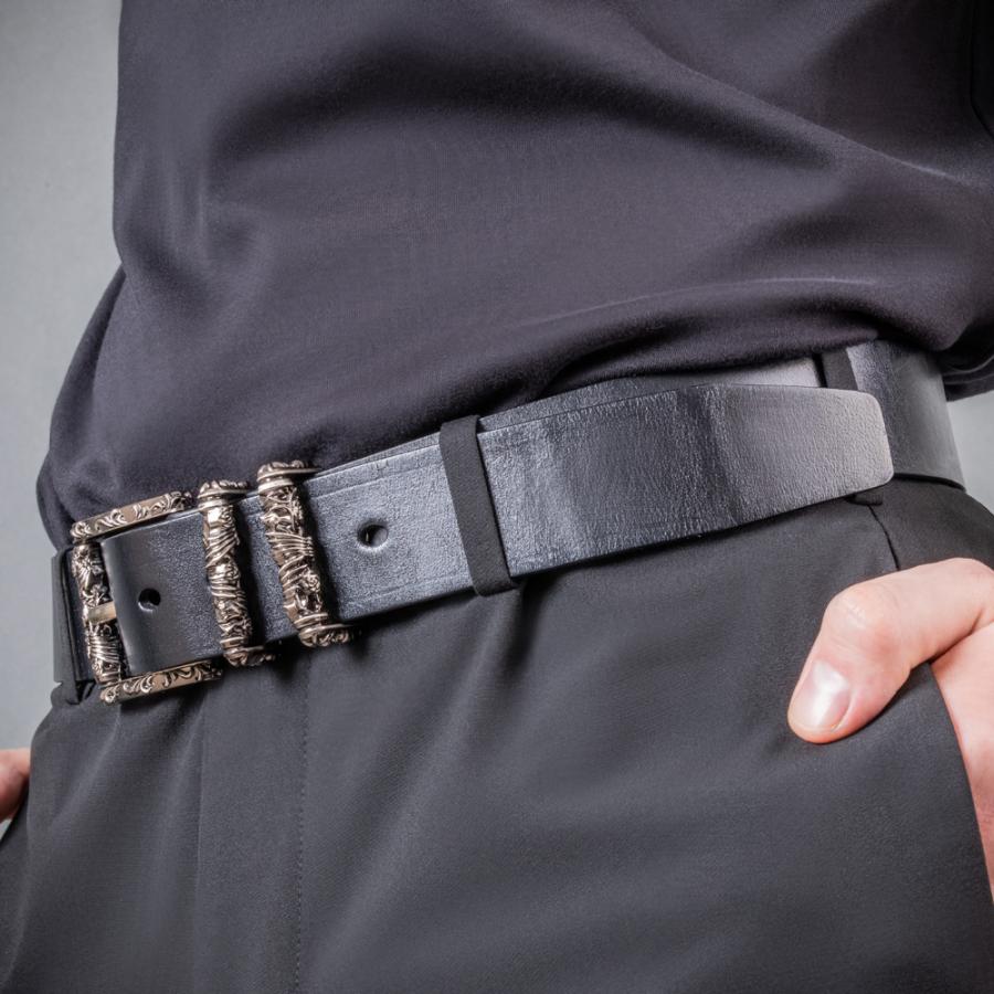 つや消しブラックの牛本革のベルトは自由な長さに革をカットして