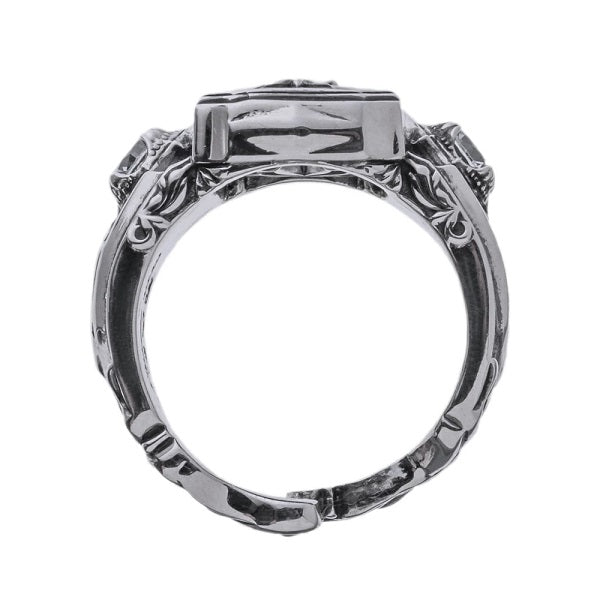 クラシカルなトレサリー柄と唐草がデザインされ、銀と石の美しい融合が魅力。