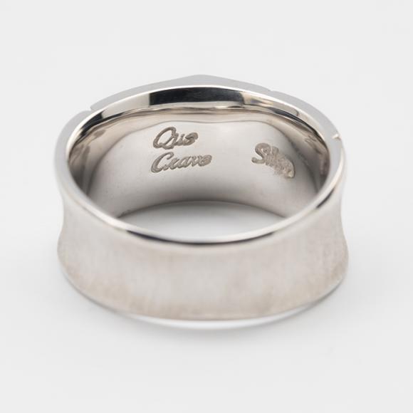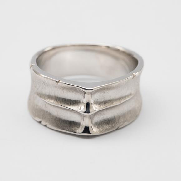 鏡面と荒らし仕上げを使った、落ち着いた雰囲気の幅広タイプのリングです。